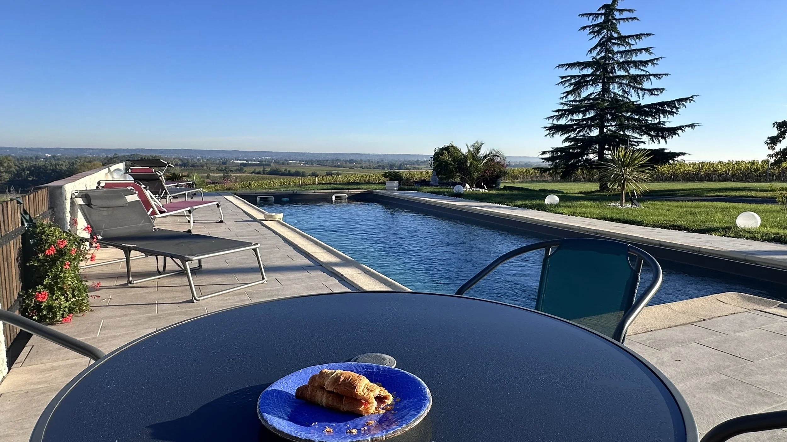 The first croissant by the pool. A key moment for new house owners.