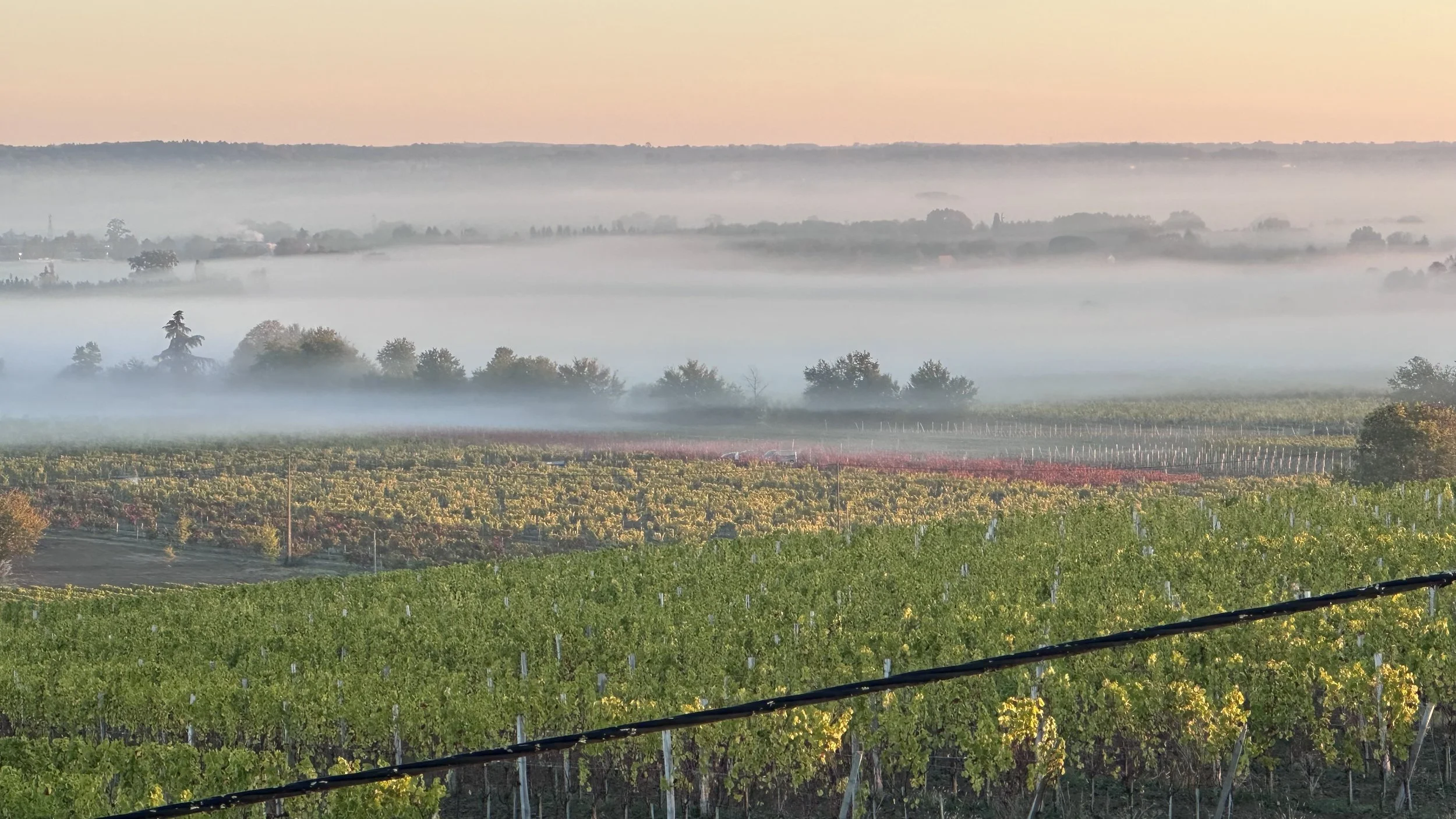 Wines from the local collective, the wine shop visible 900m away across the vineyards