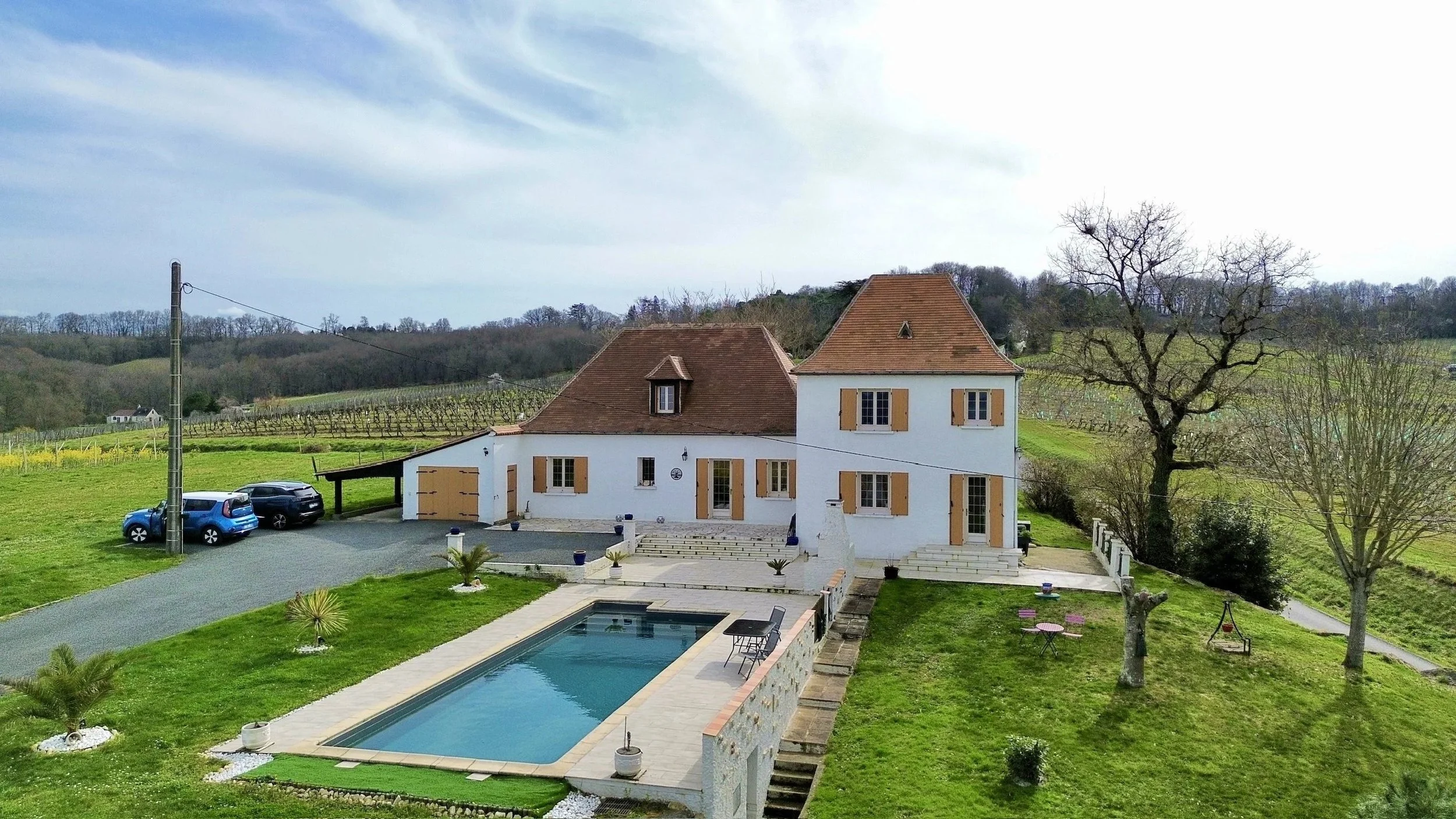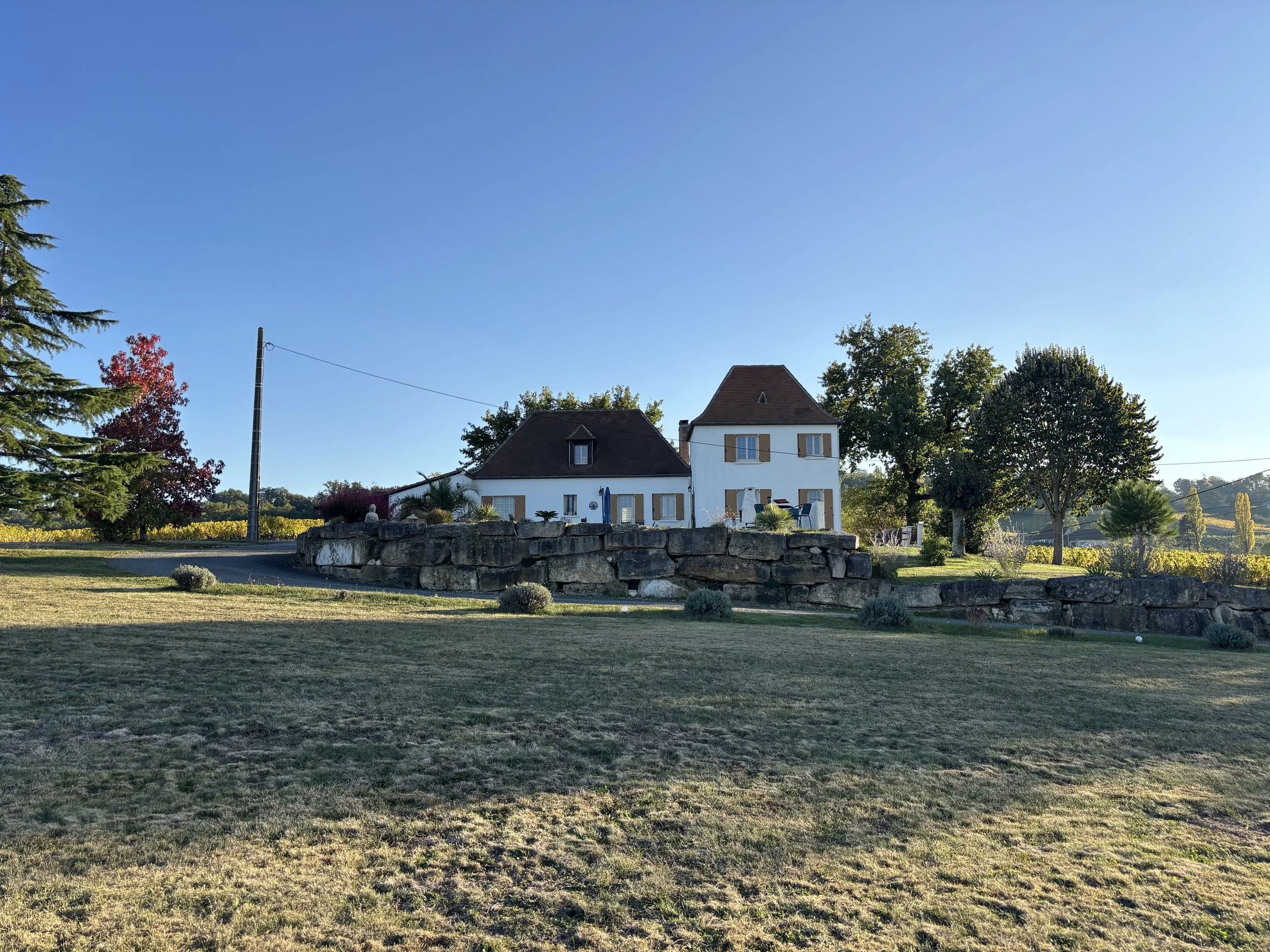 We are delighted to share La Tour Blanche for short term rentals. It is a 5 bedroom family house set in the vineyards of Monbazillac, just outside Bergerac in the Dordogne region of France. The Gallery of photos below is intended to show you the house and it’s facilities to help decide if it would meet your requirements for a pleasant vacation. We hope that it does.